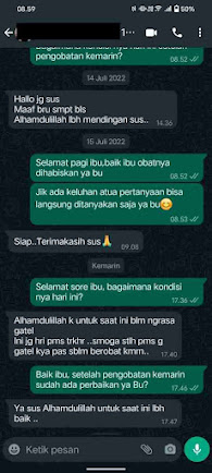 Bukti pesan singkat tentang bagaimana respon yang diberikan oleh pasien setelah berobat di Klinik Raphael.